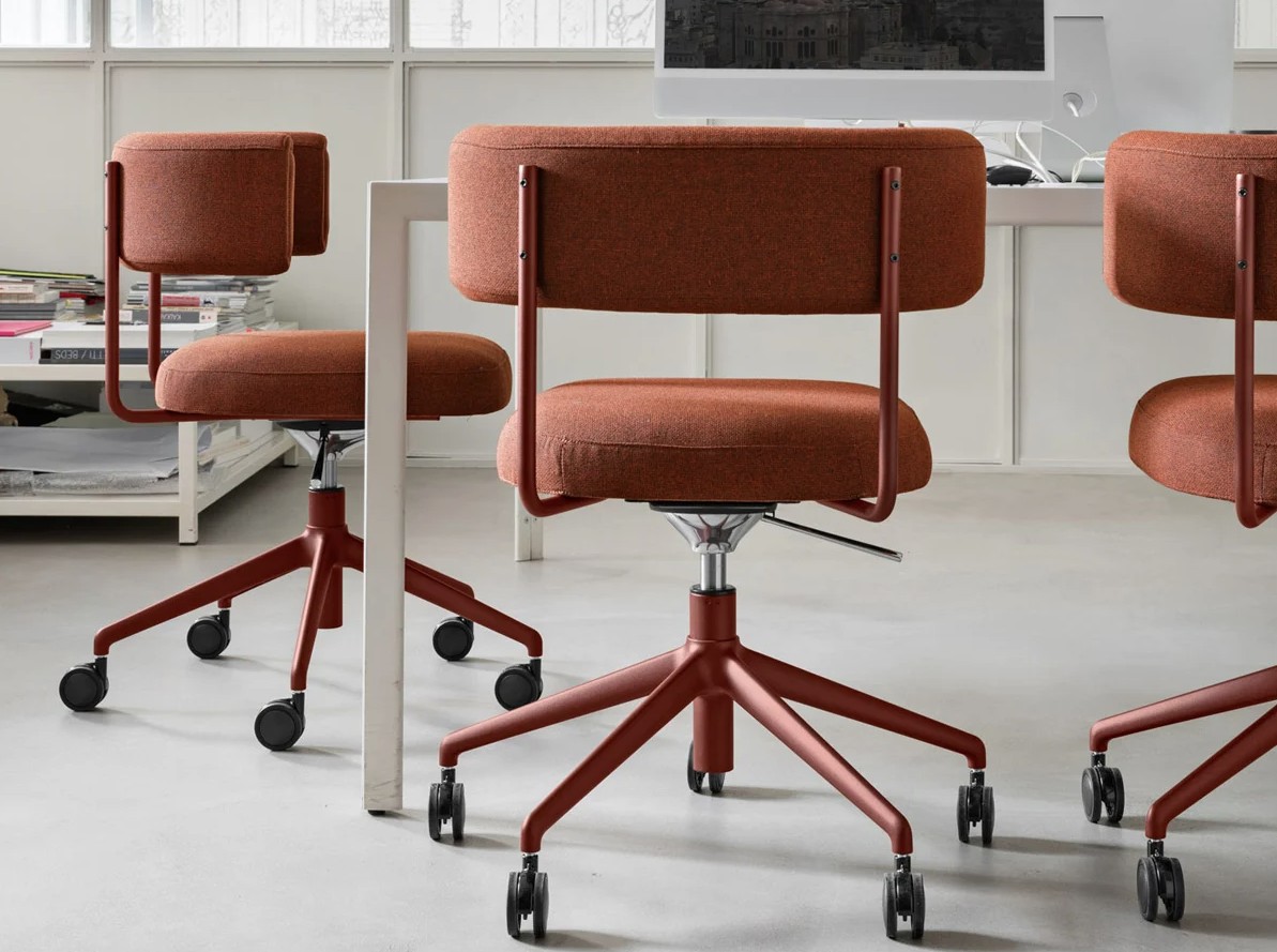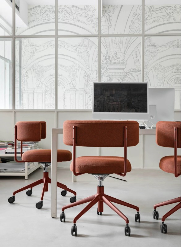 La collection Amelie présente des fauteuils rétro et élégants, avec des dossiers verticaux étendus et des sièges élargis horizontalement.