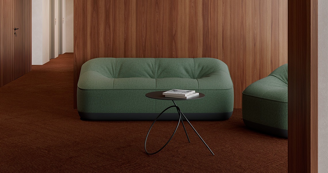 Cubow est une pièce qui joue sur le contraste entre volumes géométriques et lignes organiques. Composée d'un fauteuil et d'un canapé, la collection met le tissu en avant, définissant une silhouette marquée par le contraste entre ses côtés lisses et l'assise moelleuse, ornée d'une couture apparente. Les trois nœuds transversaux créent un véritable pli qui définit la personnalité de la collection. Le canapé Cubow s'impose comme l'évolution naturelle du fauteuil lounge, offrant ainsi une configuration d'espace libre et variée. Grâce à son ergonomie et son confort, ce canapé est idéal pour les espaces d'accueil, les zones d'attente, les espaces de travail collaboratifs et même les espaces de vie.